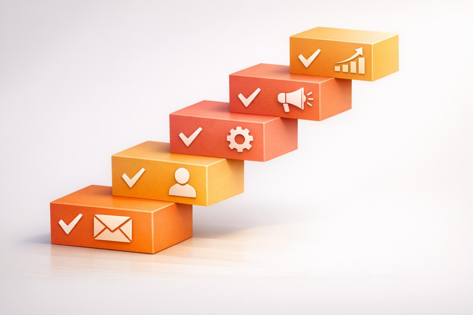 Five-step email automation checklist for small businesses covering goals, domain authentication, AI triggers, mobile-friendly campaigns, testing, and metrics.